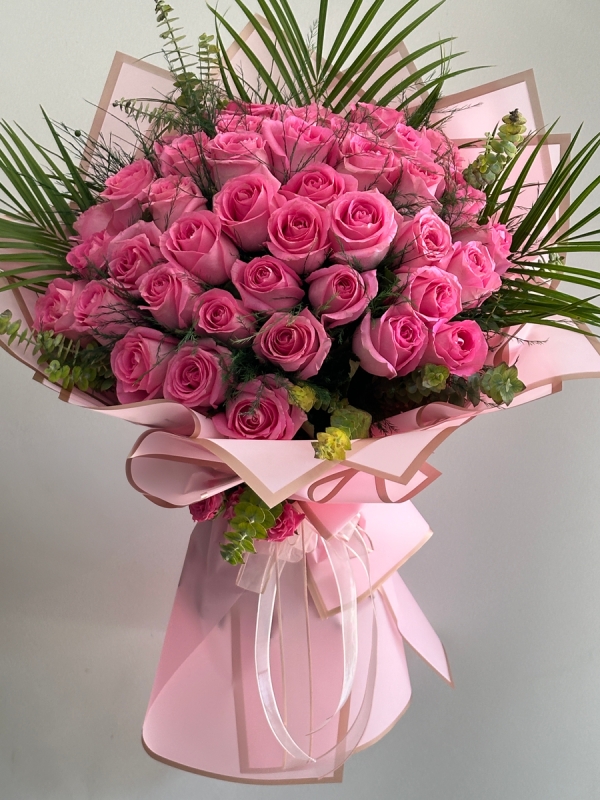 Yaklaşık 65 - 70 cm yüksekliğinde buket, 41 adet ithal Water Game güle ve dekoratif garnitürler ile hazırlanmaktadır.